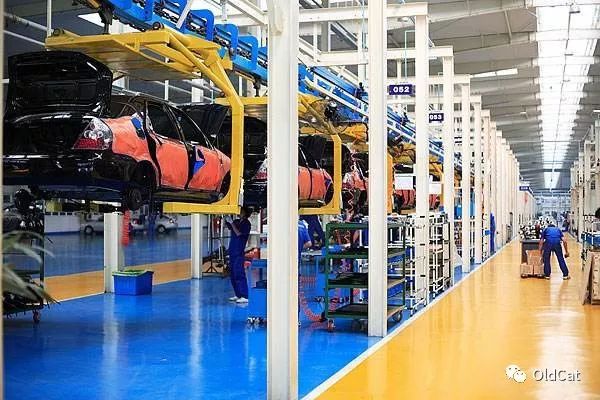 1)冲床压制框架外壳 2)车体倒转焊接 3)除毛边 4)装配大梁、防震、引擎 5)内部装潢 6)加装散热器、油压系统 7)安装轮胎