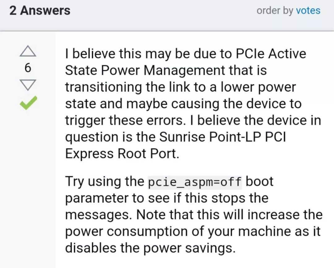 大概是说电源管理将链路转为了低功耗状态,造成了设备触发了一些错误,至于是不是这个意思,咱就不深究了