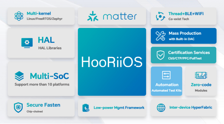 HooRii Technology 是结构性物联网趋势所孕育的商业发行版软件系统提供商,也是 Thread 技术的中国奠基人。通过提供以 HooRiiOS 软件系统作为交付基线的物联网解决方案,HooRii 致力于为全球高端 IoT 品牌和 IoT 设备制造商创造极致的降本、增效价值,并助力客户提供设备品质。