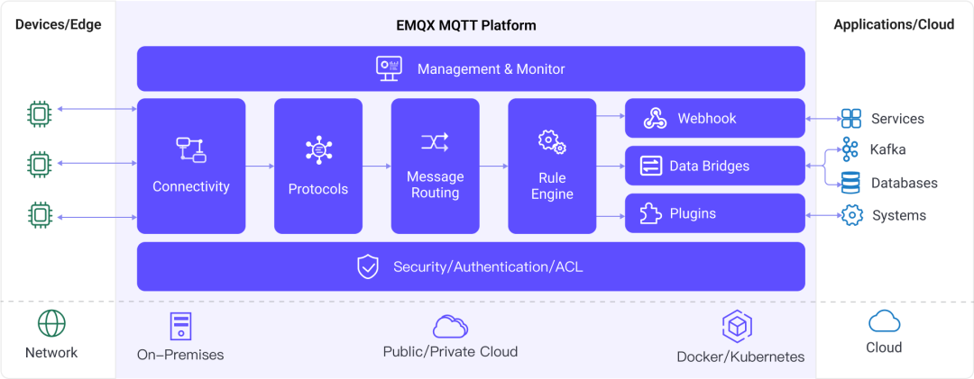 EMQ 是全球领先的开源物联网数据基础设施软件供应商,具备多协议接入、全网络设备接入、流式数据处理等技术优势。EMQ 提供基于云和边的统一消息接入和流式数据处理方案,通过 SQL 一站式数据提取、筛选、转换和处理消息数据,灵活集成十余种数据库和 Kafka 流处理中间件,支持快速企业集成与持续应用创新。
