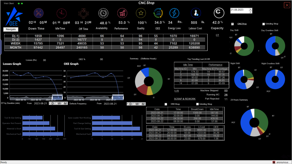 生产线CNC设备OEE展示
