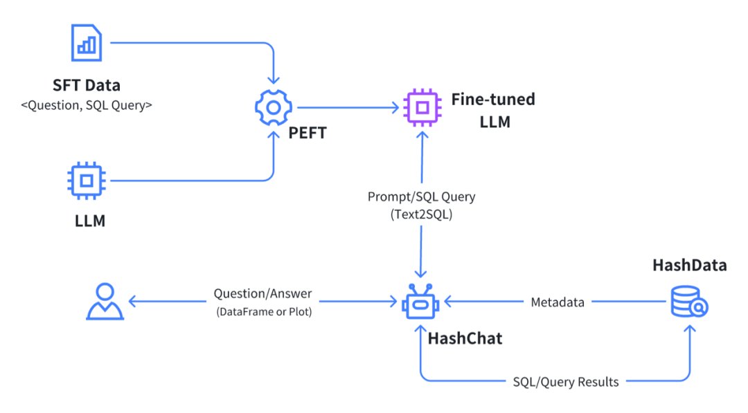 与需要大规模计算资源的千亿级参数模型不同,HD-SQL-LLaMA2模型更轻量化,可以部署在单个消费级GPU上进行实时高效推理。这不仅降低了企业使用成本,也使其可以部署于私有环境中,有效保护了企业敏感数据的安全性,满足合规要求。同时,基于HashML提供的AI开发能力,HD-SQL-LLaMA2还支持根据企业数据特点进行快速的本地微调和升级,提供了一个灵活的定制化解决方案。