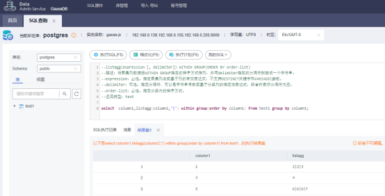 --描述:将聚集列数据按WITHIN GROUP指定的排序方式排列,并用delimiter指定的分隔符拼接成一个字符串。