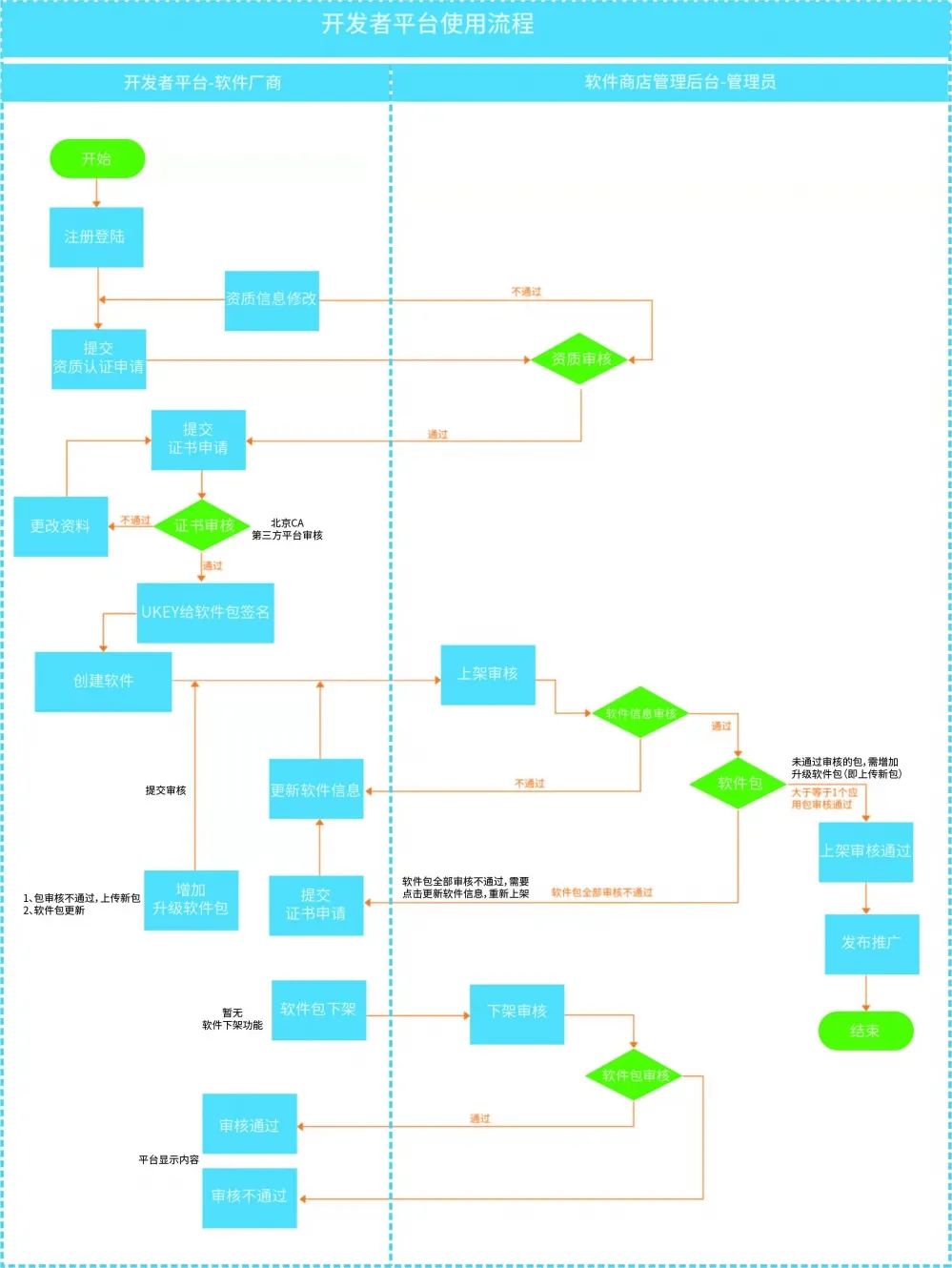 为了与生态伙伴更方便快捷的合作,麒麟软件构建了第三方厂商的适配认证服务平台、云测试环境等,并将生态工作流程打造为简单方便的“一条龙服务”,即:一站式申请——产品选择——测试准备——测试执行——报告输出。在认证过程中,麒麟软件团队始终严格遵循开发者平台资质认证流程,操作规范化、安全化,只为不断满足用户的各方面应用需求。