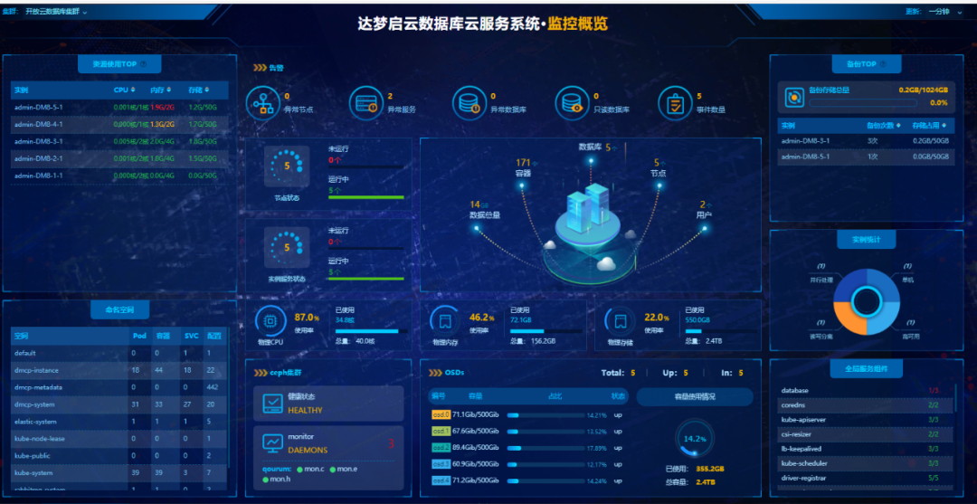 云计算、大数据、人工智能的普及,为云原生数据库发展提供了新的发展空间。面对新兴技术激发的市场需求,达梦引领产业发展潮流,以自主创新的数据库核心技术为基础,率先推出自研的达梦启云数据库云服务系统DMCDB。