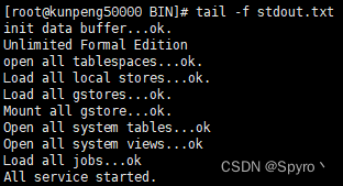 3、数据库启动未报错,但启动日志打印停留在图中位置,数据库启动失败