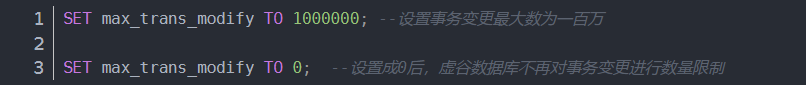 调整max_trans_modify系统参数,可通过sql命令直接设置,修改后立即生效。