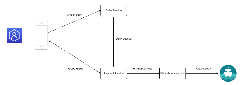 客户创建一个订单 客户收到支付请求 如果支付成功,库存将更新并交付订单