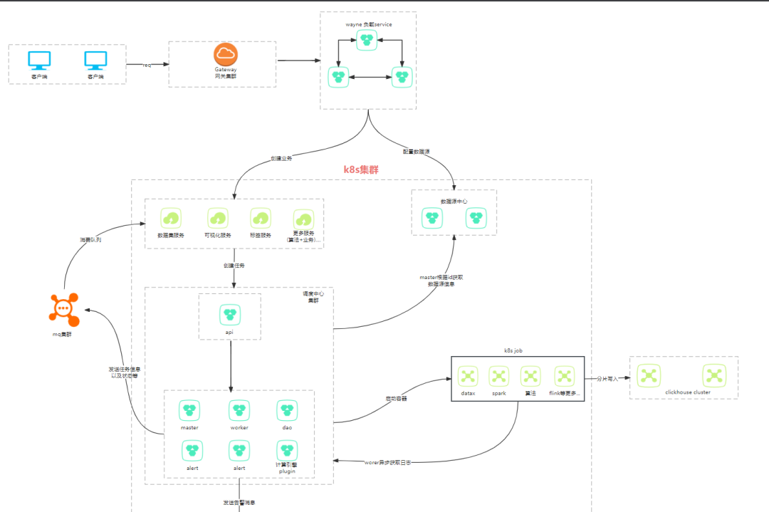 夜间定时任务多,并发量大,在该时间段内需要的资源多,但是日间需要资源相对少很多,如果使用K8S可以释放出来给其他模块使用; DataX节点运行在worker 机器上,并发大的时候,资源使用率陡增,参数设置不正确,可能会导致OOM 的情况,交给K8S运行可保证其稳定性; worker应该只做提交任务的工作,而不是负责具体任务的运行; 减少给予worker的配置资源。消耗资源小的可以运行在本地,消耗资源大的运行在k8s上。