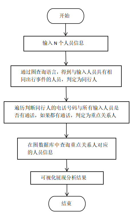 共同出行人分析可以支撑流行传染病患者密切接触人追踪、嫌疑人查找、团伙发现等应用。共同联系人分析的方法流程图如下图所示。