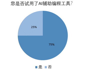 ITPUB发现,大多数人都试用过AI工具,有75%的开发者试用了AI辅助编程工具。其中,有76%的开发者试用了ChatGPT,其次是GitHub Copilot(28%)、OpenAI Codex(11%),再然后是Amazon CodeWhisperer 和OpenAI Codex,开发者各占6%,问心一言为4%,通义千问和科大讯飞星火均是1%。