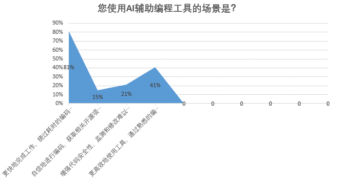 在人工智能高速发展阶段,很多开发者基于机器学习和深度学习技术,进行场景构建。20%的开发者经过实践发现,好的AI工具可以加速应用构建过程,通过应用的不断使用和反馈来改进算法和模型,进而提升开发和应用部署的效率。