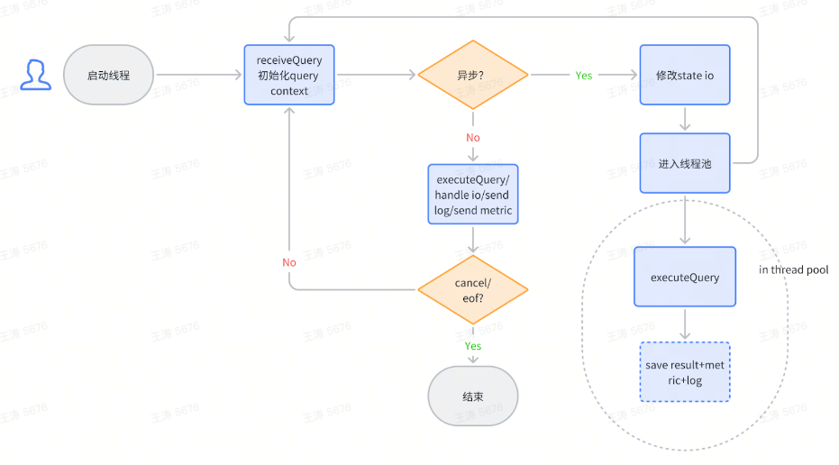 我们的集群也会出现满载情况,即所有的 worker 都是不健康的或者满载/超载的,就会用查询队列来进行优化。我们直接在 server 端做了一个 manager。每次查询的时候 manager会去check 集群的资源,并且持有一个锁。如果资源不够用,则等待资源释放后去唤醒这个锁。这就避免了 Server 端不限制的下发计算任务,导致 worker 节点超载,然后崩掉的情况。当前实现相对简单。server 是多实例,每个 server 实例中都有 queue,所持有的是一个局部视角,缺乏全局的资源视角。除此之外,每个 queue 中的查询状态没有持久化,只是简单的缓存在内存中。后续,我们会增加 server 之间的协调,在一个全局的视角上对查询并发做限制。也会对 server 实例中 query 做持久化,增加一些 failover 的场景支持。ELT 任务的一个典型特征就是相对即时分析,他们的运行时间会相对较长。一般为分钟级,甚至到达小时级。目前 ClickHouse 的客户端查询都采用阻塞的方式进行返回。这样就造成了客户端长期处于等待的情况,而在这个等待过程中还需要保持和服务端的连接。在不稳定的网络情况下,客户端和服务端的连接会断开,从而导致服务端的任务失败。为了减少这种不必要的失败,以及减少客户端为了维持连接的增加的复杂度。我们开发了异步执行的功能,它的实现如下:1.用户指定异步执行。用户可以通过 settings enable_async_query= 1的方式进行 per query的指定。也可以通过 set enable_async_query=1的方式进行 session级别的指定。2.如果是异步 query,则将其放到后台线程池中运行3.静默 io。当异步 query 执行时,则需要切断它和客户端的交互逻辑,比如输出日志等。针对 query 的初始化还是在 session 的同步线程中进行。一旦完成初始化,则将query 状态写入到 metastore,并向客户端返回 async query id。客户端可以用这个 id 查询 query 的状态。async query id 返回后,则表示完成此次查询的交互。这种模式下,如果语句是 select,那么后续结果则无法回传给客户端。这种情况下我们推荐用户使用 async query+select...into outfile 的组合来满足需求。针对 ELT 混合负载,目前只是牛刀小试。后续的版本中我们会持续补齐规划中的能力,包括但不限于以下:/ 导入优化 /