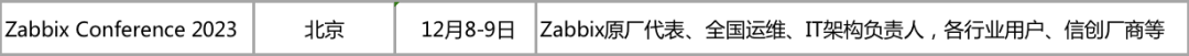 Zabbix中国峰会是Zabbix官方年度盛会,今年第八届Zabbix中国峰会计划于北京举办,Zabbix创始人Alexei Vladishev 携原厂技术专家将为中国用户分享7.0新功能及应用,Zabbix大中华区培训师、典型用户代表、合作伙伴、开源社区专家也将带来Zabbix最佳实践案例分享,更有Zabbix Workshop专场,指导实践技术功能点,是Zabbix中国用户及合作伙伴不可错过的技术和商业,实践和社交并行的年度盛会。了解更多:china@zabbix.com Z小秘:138-1772-0274(同微信)。