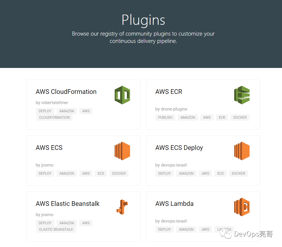 在Drone里使用插件不会像Jenkins里那样,Jenkins是在自己的平台里管理自己的插件,插件和流水线构建是集成在一起的,每次进去都会看到升级的提示。但在Drone里,插件管理和流水线是分开的,在Pipeline里声明一下,只要有网络连接能访问到就可以,究竟插件是如何管理,如何升级的都可以不用管。