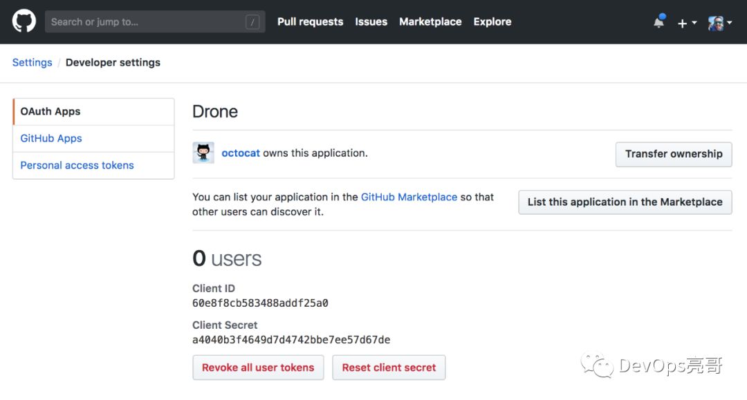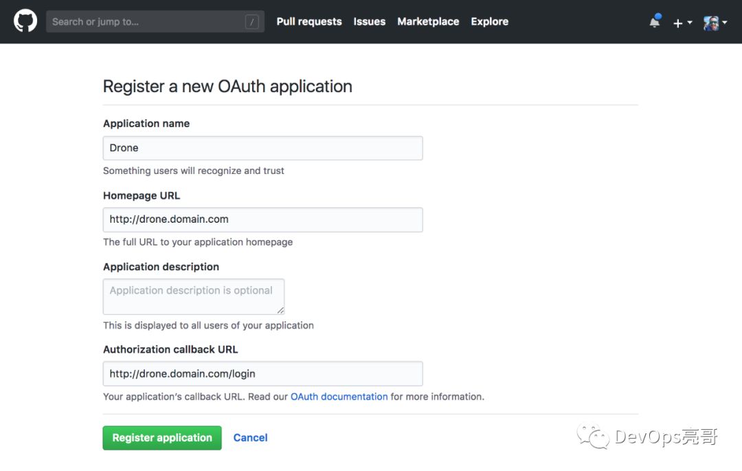 上面提到,Drone可以无缝集成多种源码管理平台,在进行Server端安装时,需要与源码管理平台进行集成,这里以GitHub为例进行说明: