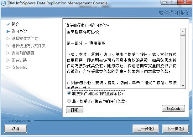 [cdc2@db2 IIDR_AccessServer]$ ./iidraccess-11.3.3-4288-linux-x86-setup.binPreparing to install...Extracting the JRE from the installer archive...Unpacking the JRE...Extracting the installation resources from the installer archive...Configuring the installer for this system's environment...Launching installer...===============================================================================Choose Locale...----------------1- Deutsch->2- English3- Español4- Italiano5- Português (Brasil)CHOOSE LOCALE BY NUMBER:===============================================================================IBM InfoSphere Data Replication Access Server (created with InstallAnywhere)-------------------------------------------------------------------------------Preparing CONSOLE Mode Installation...===============================================================================Introduction------------InstallAnywhere will guide you through the installation of IBM InfoSphere DataReplication Access Server.It is strongly recommended that you quit all programs before continuing withthis installation.Respond to each prompt to proceed to the next step in the installation. If youwant to change something on a previous step, type 'back'.You may cancel this installation at any time by typing 'quit'.PRESSTO CONTINUE:===============================================================================International Program License AgreementPart 1 - General TermsBY DOWNLOADING, INSTALLING, COPYING, ACCESSING, CLICKING ON AN"ACCEPT" BUTTON, OR OTHERWISE USING THE PROGRAM, LICENSEE AGREES TOTHE TERMS OF THIS AGREEMENT. IF YOU ARE ACCEPTING THESE TERMS ONBEHALF OF LICENSEE, YOU REPRESENT AND WARRANT THAT YOU HAVE FULLAUTHORITY TO BIND LICENSEE TO THESE TERMS. IF YOU DO NOT AGREE TOTHESE TERMS,* DO NOT DOWNLOAD, INSTALL, COPY, ACCESS, CLICK ON AN "ACCEPT" BUTTON,OR USE THE PROGRAM; AND* PROMPTLY RETURN THE UNUSED MEDIA, DOCUMENTATION, AND PROOF OFENTITLEMENT TO THE PARTY FROM WHOM IT WAS OBTAINED FOR A REFUND OF THEAMOUNT PAID. IF THE PROGRAM WAS DOWNLOADED, DESTROY ALL COPIES OF THEPROGRAM.Press Enter to continue viewing the license agreement, or enter "1" toaccept the agreement, "2" to decline it, "3" to print it, or "99" to go backto the previous screen.: 1===============================================================================Enter the TCP/IP port for Access Server.Port Number: (DEFAULT: 10101):===============================================================================Choose Install Folder---------------------Where would you like to install?Default Install Folder: /opt/IBM/InfoSphereDataReplication/AccessServerENTER AN ABSOLUTE PATH, OR PRESSTO ACCEPT THE DEFAULT: /opt/accessserverINSTALL FOLDER IS: /opt/accessserverIS THIS CORRECT? (Y/N): y===============================================================================Configure User Data Folder--------------------------Access Server requires a folder to store logs, configuration information anduser data. Specify a folder where this information should be stored.Where would you like your user data folder?Default User Data Folder: /opt/accessserverENTER AN ABSOLUTE PATH, OR PRESSTO ACCEPT THE DEFAULT:===============================================================================Pre-Installation Summary------------------------Please Review the Following Before Continuing:Product Name:IBM InfoSphere Data Replication Access ServerInstall Folder:/opt/accessserverLink Folder:/home/cdc2User Data Folder:/opt/accessserverDisk Space Information (for Installation Target):Required: 288,069,645 BytesAvailable: 501,388,230,656 BytesPRESSTO CONTINUE:===============================================================================Installing...-------------[==================|==================|==================|==================][------------------|------------------|------------------|------------------]===============================================================================Installation Complete---------------------Congratulations. IBM InfoSphere Data Replication Access Server has beensuccessfully installed to:/opt/accessserverBefore you connect to this Access Server installation, you must start AccessServer and create the administration user account. See the installation guidefor more information. You should also install the equivalent version of IBMInfoSphere Data Replication Management Console, if you haven't already done so,before connecting to Access Server.PRESSTO EXIT THE INSTALLER: