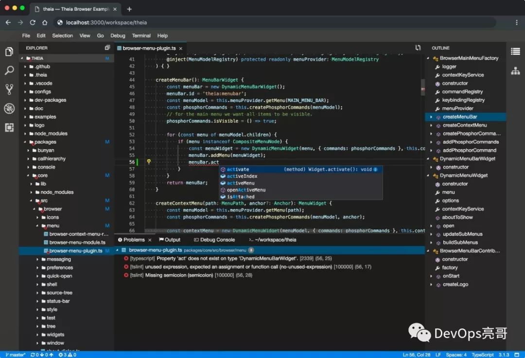 1、云端&桌面。不管是需要Web版还是桌面版,或者两者都需要。使用theia,可以开发一个定制化的IDE,即可以在浏览器里,也可以在本地以桌面应用程序启动。