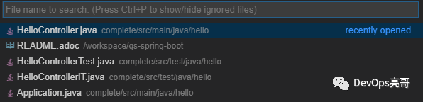 快捷键Ctrl+P会打开文件检索框,按文件名检索,默认情况下,隐藏文件和ignored文件不显示。