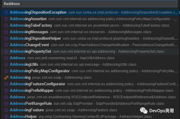 快捷键Ctrl+O会打开类型检索框,按类型名进行检索。