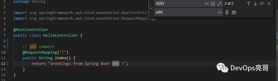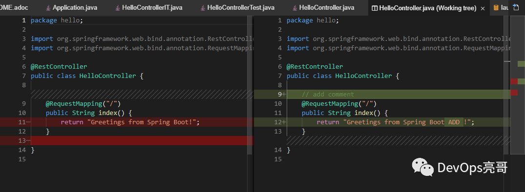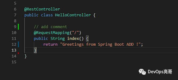 当打开一个处于版本控制中的文件,对该文件进行修改,变更指示器会显示变更的状态。