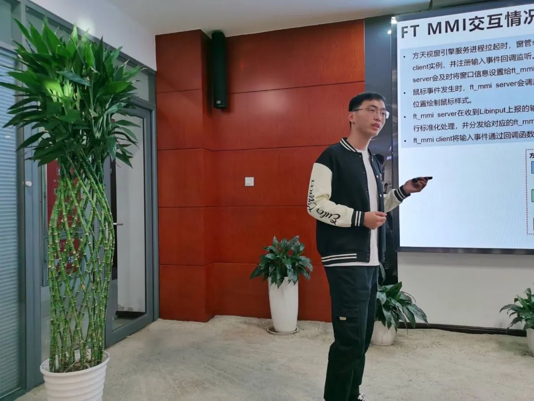 openKylin桌面环境SIG Maintainer 翟康宁分享了UKUI框架的发展。UKUI版本需快速迭代用以满足用户对UI的视觉、操控的不断变化的要求。解决快速迭代思路是UKUI框架+ 轻量级UI 。框架分为应用、API、核心服务、基础库。重点介绍通知服务、搜索服务、应用管理服务的功能及实践。老师还分享了对UKUI在轻量化、多元化、智能化的展望。FangTian SIG Committer 靳国恩围绕当前Linux主流显示协议进行讲解。阐述了Wayland及X11的区别,随后给大家带来了FangTian视窗引擎兼容Wayland的方案,包含架构解析、线程模型等。最后就目前兼容范围进行了分享,同时演示Wayland应用在FangTian视窗引擎上运行的效果。麒麟软件刘杰分享了Wayland模态窗口的一种实现。该实现扩充了Wayland协议,其中QtWayland负责收集用户模态属性信息,转发到UKUI-KWIN。UKUI-KWIN作为合成器负责父窗口拦截及动效,同时限制模态窗口行为。华为视窗开发工程师蒋文宇介绍了多模输入基本概念与FangTian视窗引擎多模输入(FT MMI)子系统的能力现状,还介绍了FT MMI子系统与其他FangTian视窗引擎子系统的关系与交互情况,说明了FT MMI子系统的内部架构。并以鼠标事件为例向大家分享了输入事件的分发、处理响应的基本流程。FangTian SIG Commiter谢益君带大家回顾了GUI开发框架的技术演进历史,从框架架构层次分享了其优势与挑战,解释了技术演进的推动原因;分享了当前FangTian视窗引擎决定ArkUI作为重点适配的GUI开发框架的选择理由,并分享了ArkUI框架的基本结构;最后,老师还介绍了当前ArkUI开发框架在openEuler上的适配现状以及后续的工作规划。麒麟软件孙振介绍了麒麟SDK的背景、目标价值及SDK整体架构,并详细剖析了自研控件模块libkysdk-qtwidgets及窗口管理模块libkysdk-waylandhelper。其中libkysdk-qtwidgets可实现主题切换、自适应平板/PC模式、支持控件半透明及动画效果等。libkysdk-waylandhelper则能够实现窗口操作和属性设置、窗口样式和显示效果等。UKUI在Linux发型版本上的迁移与适配-以openEuler社区为例麒麟软件裴健康老师分享了UKUI在openEuler适配。2020年麒麟开始在openEuler社区支持UKUI3.0, 22年开始支持UKUI3.1,持续丰富应用生态。随后详尽说明了openEuler社区构建UKUI软件包的具体实践、操作。
