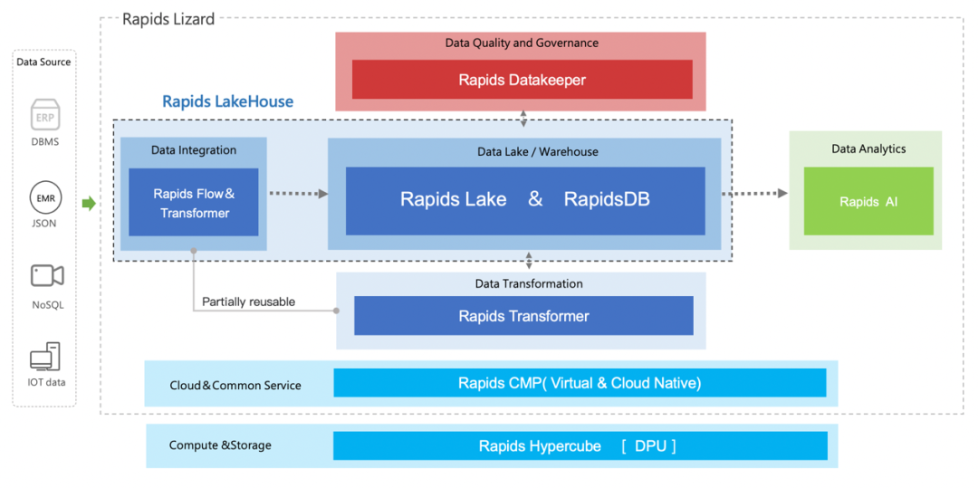 柏睿数据湖基于自研数据集成工具Transformer等产品,可为结构化、半结构化、非结构化和标准机器学习模型等入湖数据提供高性能、高效率的透明操作支持,并利用各种工具对这些数据进行后续处理和分析。