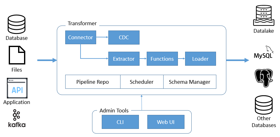 Transformer产品为多源异构数据提供高性能的数据集成功能。从数据源提取的数据,可以自动匹配、加载到对应数据类型的同构或异构的目标平台。