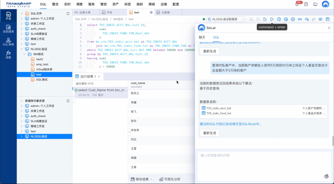 为更好地激发AI模型资产价值,Sophon 3.2发布的Sophon LLMOps大语言模型运营平台,提供大模型的微调及运维工具链,可帮助企业用户快速开发构建领域大模型应用。同时,使用Sophon LLMOps进行指令开发和模型微调、对齐,星环科技开发出了最新的大数据分析大模型SoLar求索,可以基于自然语言进行SQL、Python和Cypher的快速转化,让业务人员在不需要学习和掌握数据库编程语言的前提下自由地按需查询数据。