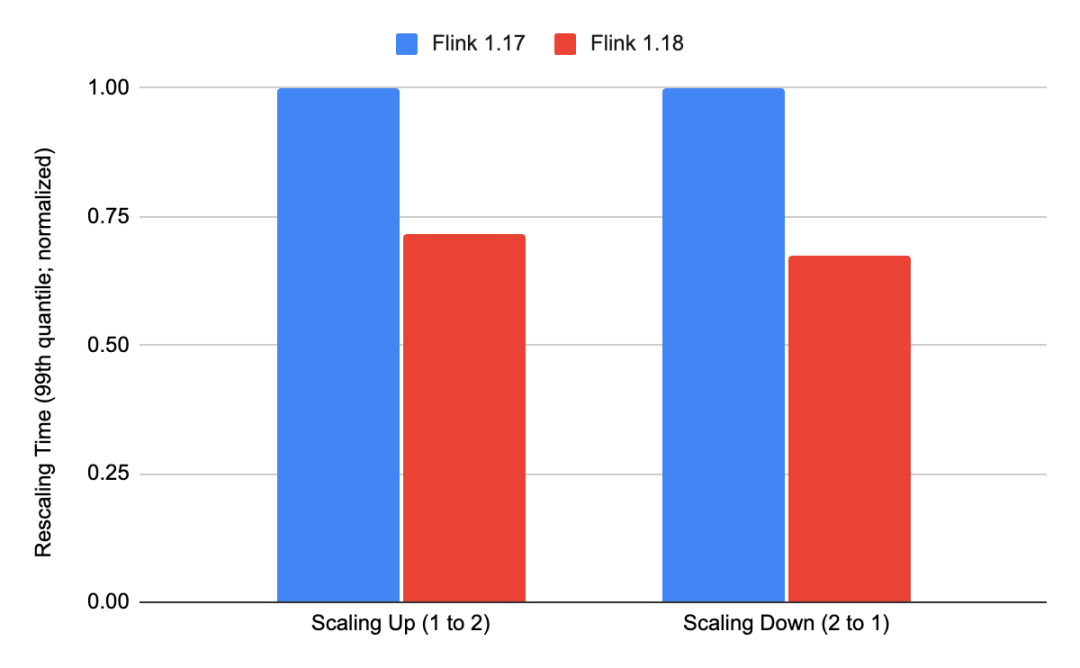 使用 RocksDB 状态后端和增量 checkpoint 的扩缩容时间在第 99 百分位数(99th percentile)上提高了约 30%。我们提升了并行下载的能力,从只并行下载状态句柄(state handle),扩展到并行下载文件。此外,我们关闭了用于扩缩容的临时 RocksDB 实例在批量插入时的写前日志(write-ahead-logging)。