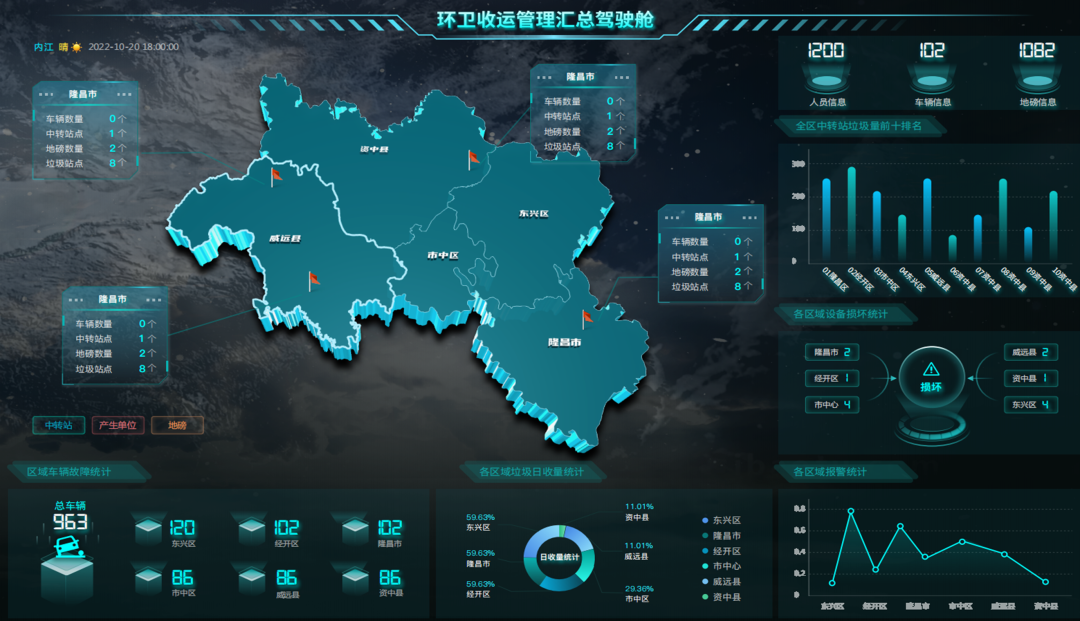 实现对垃圾收运的人员、车辆、部件设施进行规范化的信息管理,帮助环卫部门对纳入收运体系的各类资源进行统筹规划和统一管理。涵盖管理驾驶舱,车辆轨迹,车辆实时信息,产生单位信息管理,收运容器信息管理等10余项主要功能。