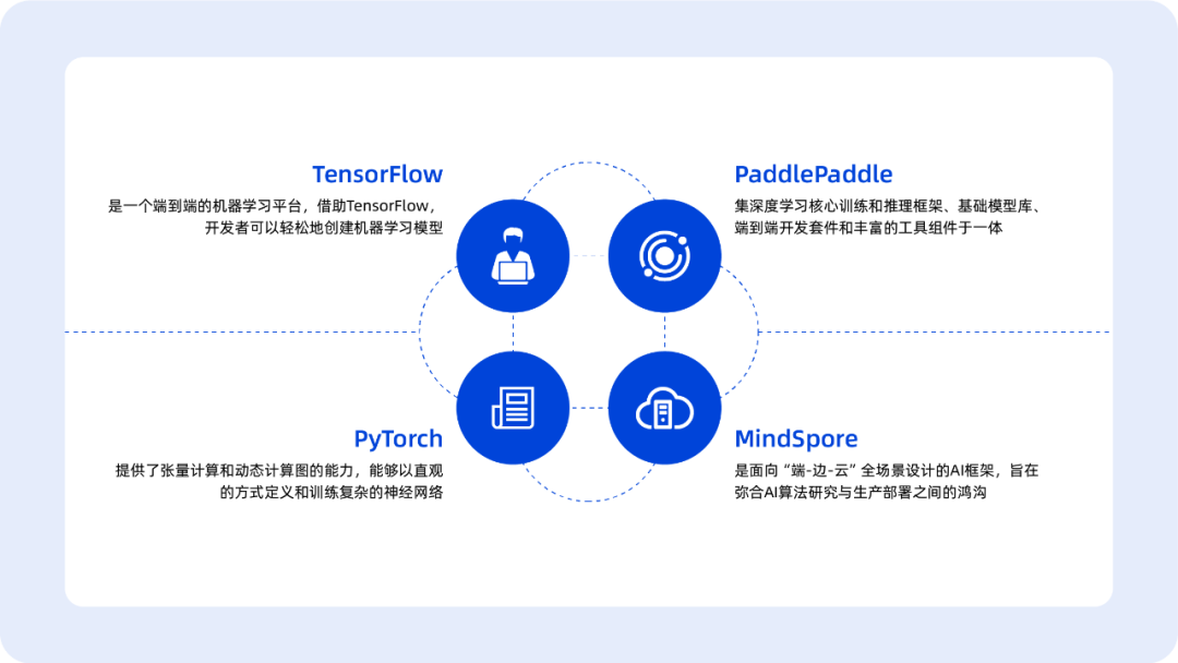 在软件领域,统信UOS服务器版已经适配了众多主流的人工智能框架,如TensorFlow、PyTorch、MindSpore和PaddlePaddle等。这些框架不仅覆盖了各个领域的人工智能开发需求,还提供了丰富多样的工具集,为开发者们提供了灵活且高效的使用体验,使得他们能够在自然语言处理和计算机视觉等领域展开深入研究和探索。