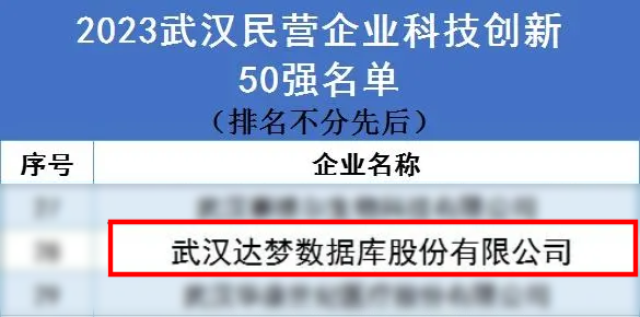 8月28日,武汉市工商业联合会召开新闻发布会,2023武汉民营企业100强、民营制造业企业50强、民营企业科技创新50强榜单正式发布。凭借研发投入、科技创新、人才培养等方面的突出成效,达梦数据成功入选“2023武汉民营企业科技创新50强”。