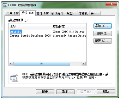 注意:当点击了确定,数据源管理对话框出现,ODBC 管理器更新注册表信