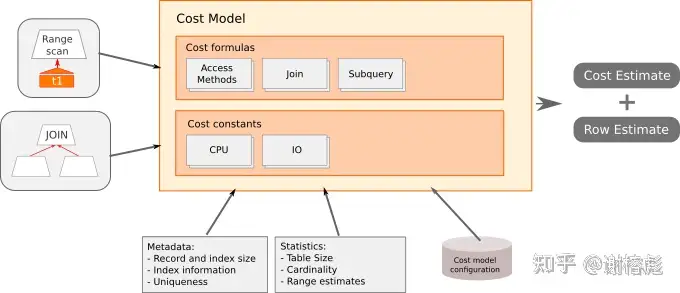 对于 query_block,通常有很多不同的执行方案:如需要选择访问的 btree 索引,以及访问 btree 数据的方式(index scan、range scan or index lookup),对于 INNER JOIN 的查询,还需要考虑不同表的 JOIN 顺序。Optimizer 优化器会对其中一些的可能方案的 cost 进行估计,选择 cost 低的生成物理执行计划,存储引擎提供用于估计 cost 的统计信息。