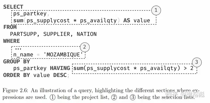 - 在 SELECT 语句的 projection list,SELECT 真正查询的 column 列表
