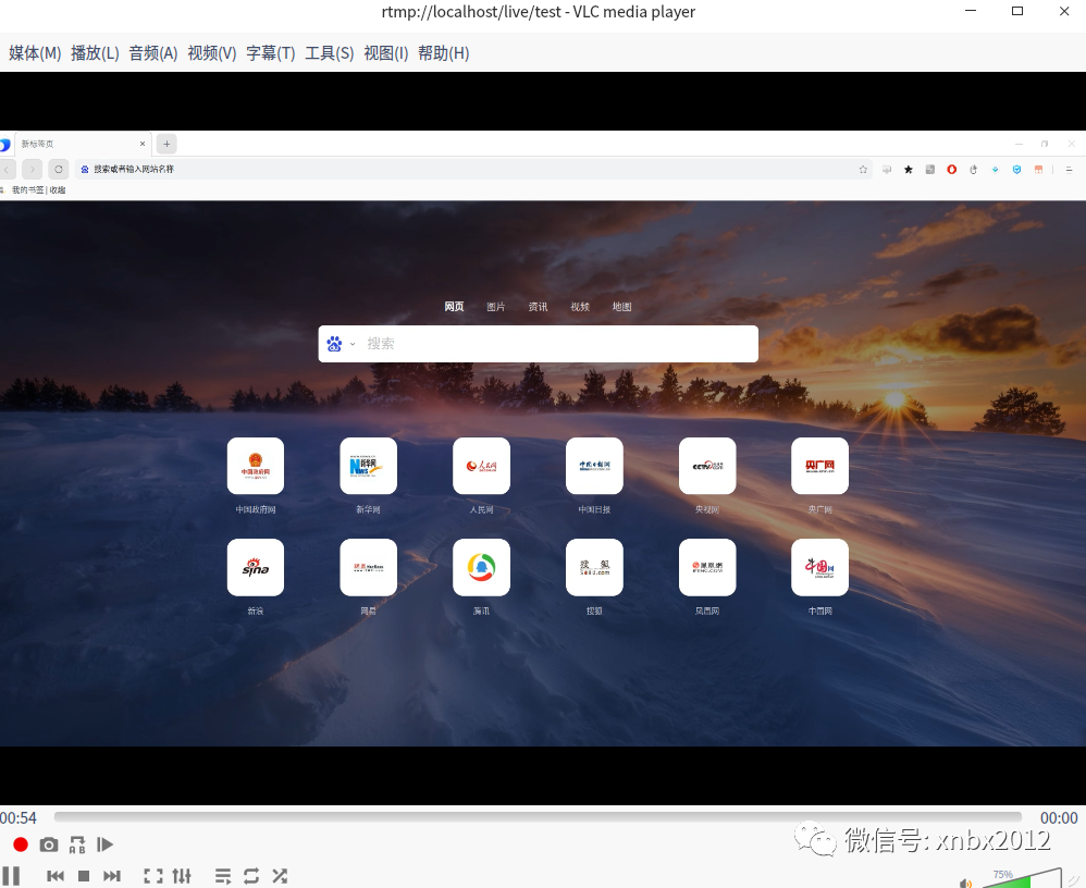 可以在OBS中添加图片等素材测试播放是否成功,若播放成功可进行下一步,VLC测试播放效果如图