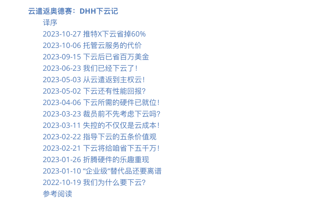 曾几何时,“上云“近乎成为技术圈的政治正确,整整一代应用开发者的视野被云遮蔽。DHH 以及像我这样的人愿意成为这个质疑者,用实打实的数据与亲身经历,讲清楚公有云租赁模式的陷阱。