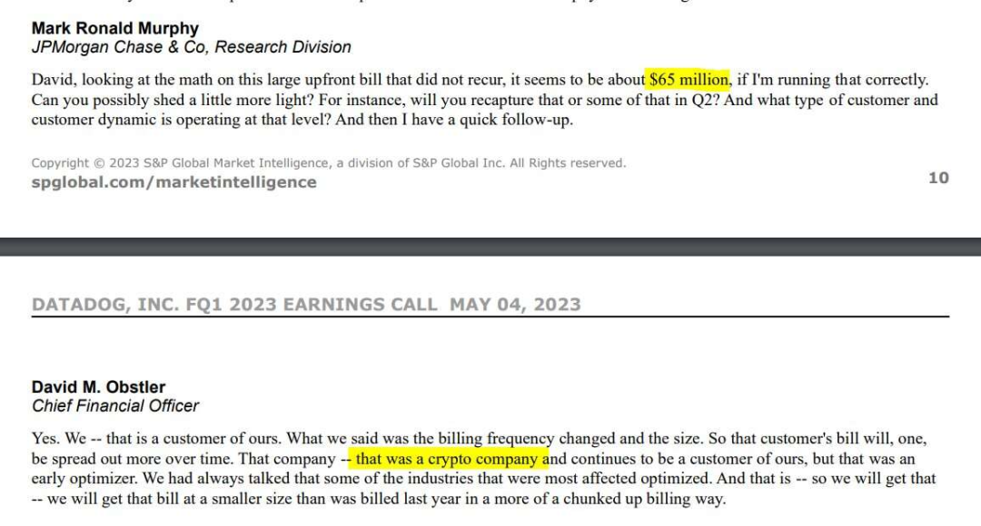 然而,我原本以为我们的账单已经够傻逼了。但是竟然有一个 Datadog 的客户为他们的服务支付了 6500 万美元!!这个信息是在他们最近的财报电话会议上提到的。这显然是一家加密货币公司,用“优化”账单的方式承认了这项蠢出天际的开支。