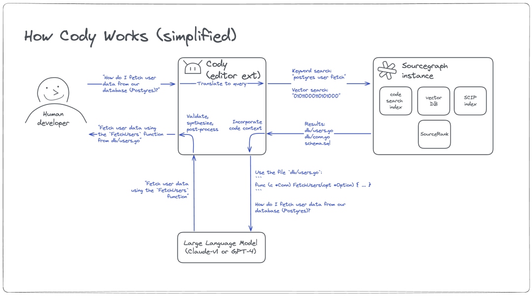 Cody (https://github.com/sourcegraph/cody) 是 Sourcegraph 开源的 AI 编程助手,可作为 VS Code 或 JetBrains 扩展使用。Cody 由 Sourcegraph 的 code graph 驱动,所以会对整个代码库有所了解。