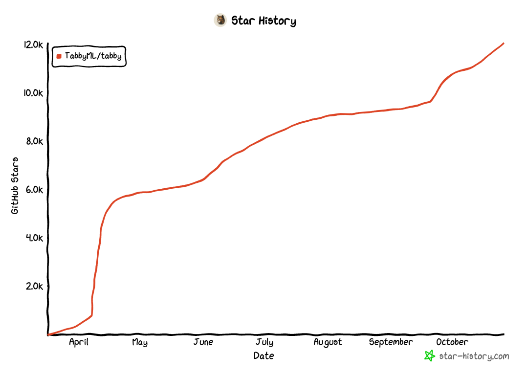 十月对于 Tabby 来说是个大月 - 他们前不久刚庆祝了 11k GitHub 星星,还获得了 320 万美元的融资。