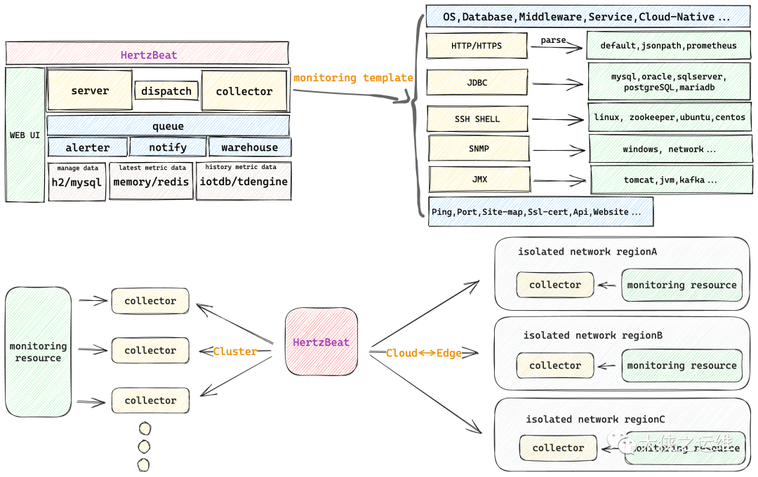 HertzBeat具备出色的性能,支持多采集器集群的水平扩展,同时支持多个隔离的网络监控和云边协作。