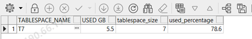 这里我进行测试创了一个可自动扩展最大值为7G的表空间 OS剩余内存为14.4G,满足其自动扩展的最大内存使用,此时tablespace_size值为7GB 。