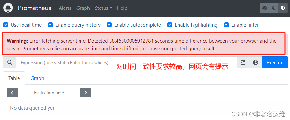 注意:prometheus 对时间一致性要求非常高,不然无法监控到服务数据。