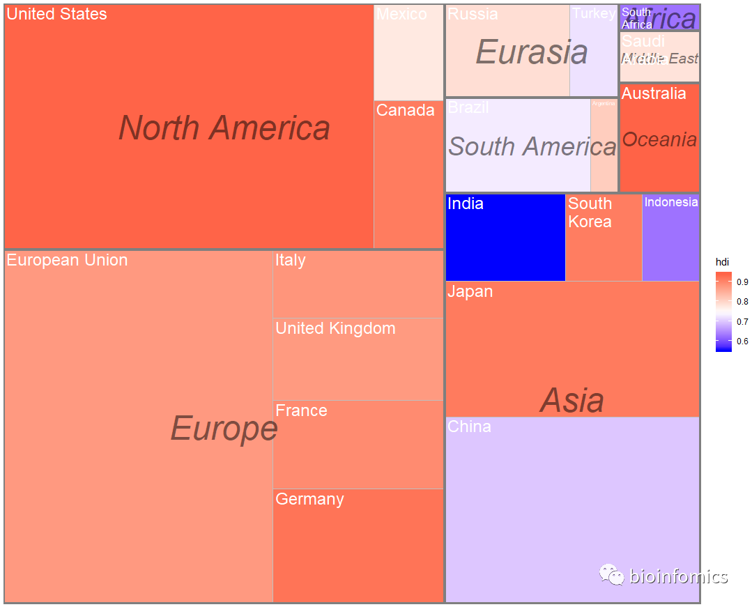ggplot(G20, aes(area = gdp_mil_usd, fill = hdi, label = country)) +
