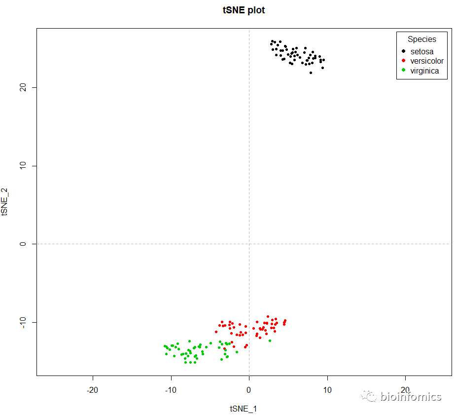 tsne_out <- Rtsne(iris_matrix,pca=FALSE,dims=2,