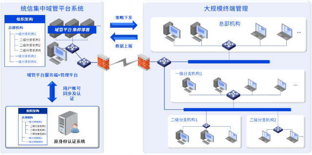 同时集中域管平台支持与包括Windows AD域在内的第三方认证平台对接,实现数据同步和认证对接,实现与企业当前统一认证服务打通,解决信创终端环境下统一身份认证的问题,并且通过与AD域信任、多因子认证集成能力,增强信创终端身份认证安全性的同时,提升终端客户的使用体验。