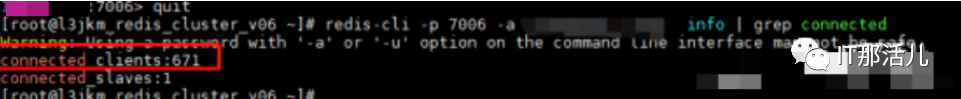 redis-cli -p 端口 -a XXXXXX info |grep connected