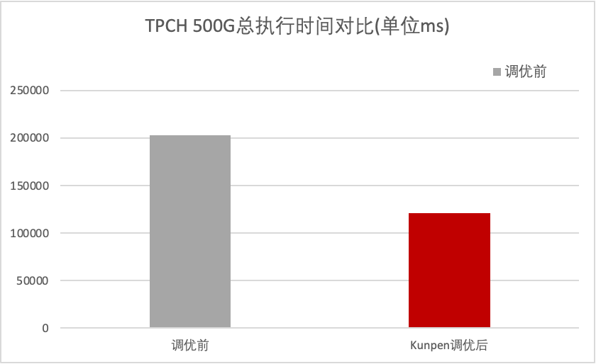 柏睿数据使用500G数据量的TPC-H来测试RapidsDB在鲲鹏平台的运行性能(TPC-H标准用于评价数据库对特定查询的决策支持能力,强调数据库在数据挖掘、分析处理方面的能力)。