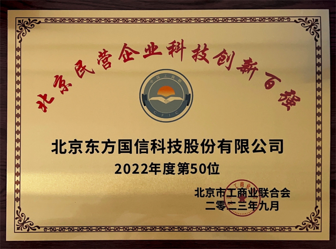 自2018年起,北京市工商联已经连续六年开展民营企业百强调研与发布,旨在推动民营经济立足首都城市战略定位,实现高质量发展,充分发挥首都优势、贯彻新发展理念、服务和融入新发展格局,经过优化调整调研评价指标体系,最终形成2023北京民营企业“1+4”百强榜单。东方国信深耕大数据领域20余年,见证了北京市科技的迅猛发展。东方国信作为处在浪潮中的一员,始终坚持技术自研,从大数据到5G再到人工智能大模型,不断提高核心竞争力,凭借着优秀的科研、管理和交付团队,创造了一个个丰硕的科研与业务成果,并在“中关村论坛”“全球数字经济大会”等大型科技展会上亮相,展示了民营企业的风采。目前东方国信已累计布局大数据、5G、人工智能大模型、云计算、工业互联网等技术领域,以丰富的产品及解决方案服务数千客户。民营经济是推进中国式现代化的生力军,是高质量发展的重要基础。作为北京民营企业科技百强之一,东方国信一直致力于为用户提供数据服务,赋能运营商、金融、工业企业数字化转型。未来,东方国信将持续投身科技领域技术研发,发挥自身优势,助力首都经济社会高质量发展。